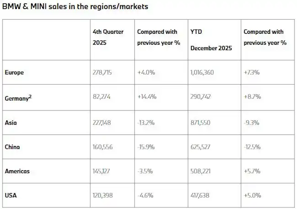 中国仍是宝马集团全球最大市场,全年累计销量为625,527辆,但同比下降12.5%,也是全球降幅最大的单一市场。